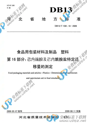 DB 13/T 1081.16-2009 食品用包装材料及制品 塑料 第16部分:已内酰胺及己内酰胺盐特定迁移量的测定