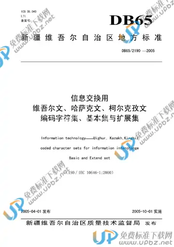 DB 65/ 2190-2005 信息交换用维吾尔文、哈萨克文、柯尔无孜文编码字符集、基本集与扩展集