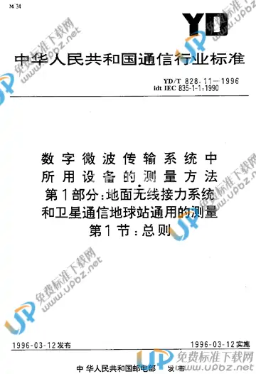 YD/T 828.11-1996 数字微波传输系统中所用设备的测量方法 第1 部分:地面无线接力系统和卫星通信地球站通用的测量 第1节:总则