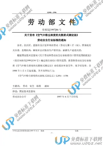 LD/T 98-1996 空气中粉尘浓度光散射式测定法