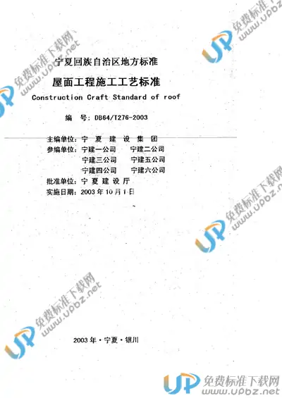DB64/T272-2003砌体工程施工工艺标准DB64/T278-2003建筑地面工程施工工艺标准DB64/T283-2003电梯工程施工工艺标准DB64/T274-2003钢结构工程施工工艺标准DB64/T275-2003木结构工程施工工艺标准DB64/T271-2003建筑地基基础工程施工工艺标准DB64/T282-2003建筑电气工程施工工艺标准DB11/T1832.9-2022建筑工程施工工艺规程第9部分:屋面工程DB64/T281-2003通风与空调工程施工工艺标准DB64/T273-2003混凝土结构工程施工工艺标准