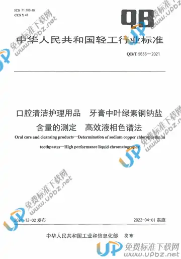 - 标准名称:口腔清洁护理用品 牙膏中叶绿素铜钠盐含量的测定 高效液相色谱法