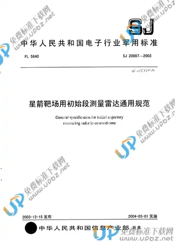 SJ 20887-2003 星箭靶场用初始段测量雷达通用规范