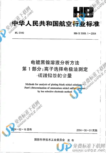 HB/Z 5089.1-2004(2010) 电镀黑镍溶液分析方法 第1部分:离子选择电极法测定硫酸镍铵的含量