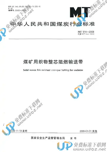 MT 914-2008 煤矿用织物整芯阻燃输送带