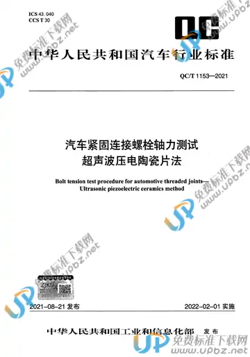 QC/T 1153-2021 汽车紧固连接螺栓轴力测试 超声波压电陶瓷片法