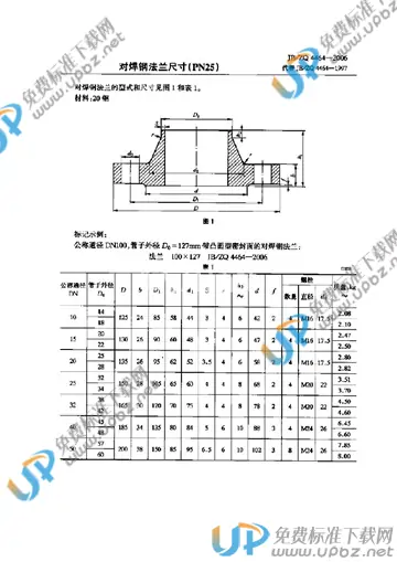 JB/ZQ 4464-2006 对焊钢法兰尺寸(PN25)