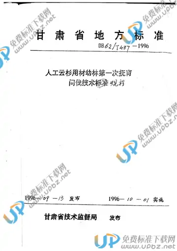 DB 62/T 487-1996 人工云杉用材幼林第一次抚育间伐技术规程