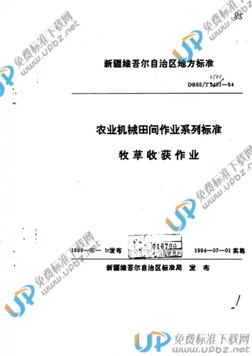 DB65/T 2500-1994 农业机械田间作业系列标准 牧草收获作业