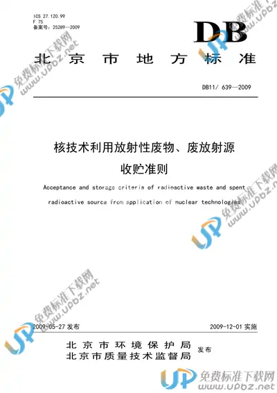 DB11/ 639-2009 核技术利用放射性废物、废放射源收贮准则