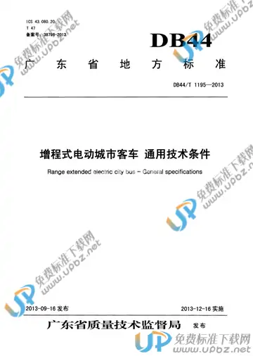 DB44/T 1195-2013 增程式电动城市客车 通用技术条件