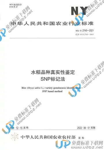 NY/T 2745-2021 水稻品种真实性鉴定 SNP标记法