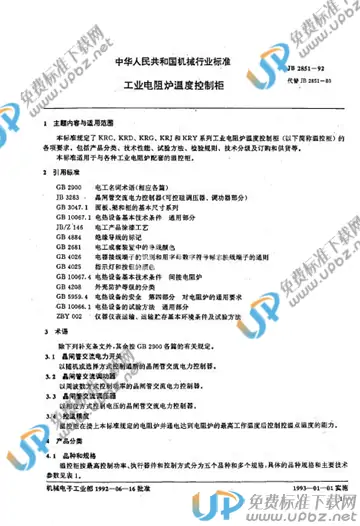 JB/T 2851-1992 电阻炉温度