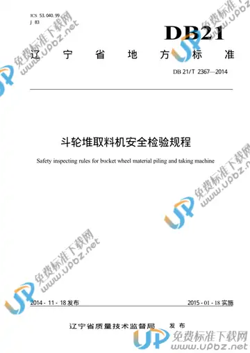 地方标准《斗轮堆取料机安全检验规程》由锦州市质量技术监督局归口上报,主管部门为辽宁省质量技术监督局。
