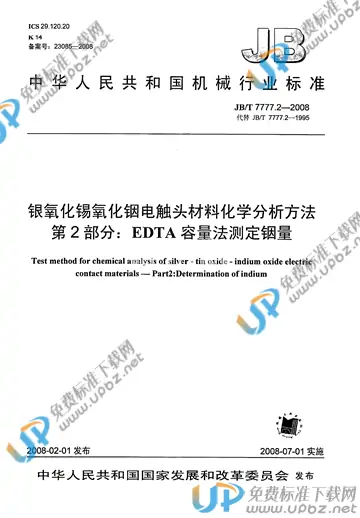 JB/T 7777.2-2008 银氧化锡氧化铟电触头材料化学分析方法 第2部分:EDTA容量法测定铟量