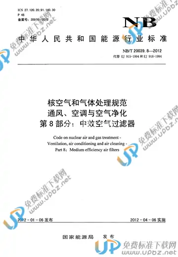 NB/T 20039.8-2012 核空气和气体处理规范 通风、空调与空气净化 第8部分:中效空气过滤器